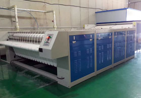 熨平機(jī)的調(diào)試常和其試運行同時進(jìn)行。為此,須在設(shè)備調(diào)試時,將一定數(shù)量的、用水浸透并經(jīng)甩干烘干的布草織物備好待用。